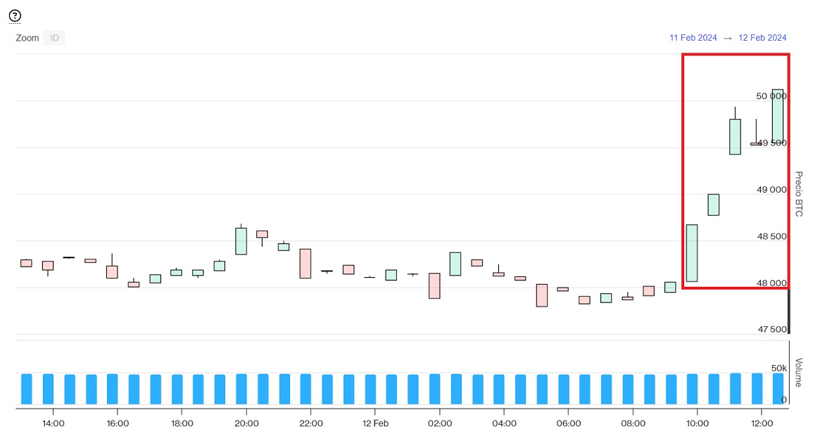 El precio de Bitcoin (BTC) siguió aumentando y superó oficialmente la barrera de los $50.000 por unidad este 12 de febrero. Las principales altcoins también comienzan a replicar el alza vista con BTC en las últimas horas.