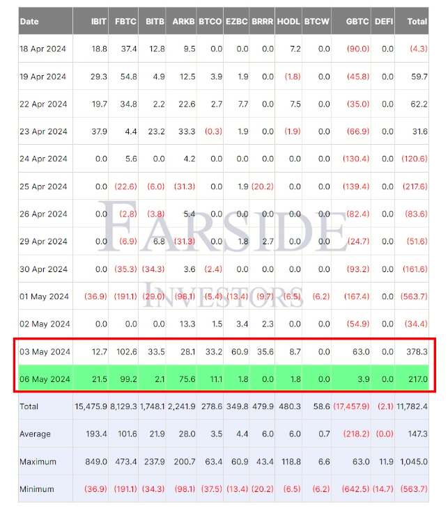 Sin embargo, el 3 de mayo, GBTC registró su primera entrada de USD 63 millones, marcando un punto de inflexión en su trayectoria. Esta entrada positiva contribuyó a que el mercado global de ETF de bitcoin al contado registrara entradas netas positivas de USD 378.3 millones, tras siete días consecutivos de pérdidas.
