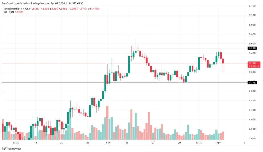 Tras alcanzar un máximo histórico en marzo, el precio de TON se ha consolidado entre 5.50 dólares y 4.77 dólares. Los inversores y analistas están atentos a una posible ruptura por encima de los 5.50 dólares con un fuerte volumen, lo que podría indicar una continuación de la tendencia alcista.